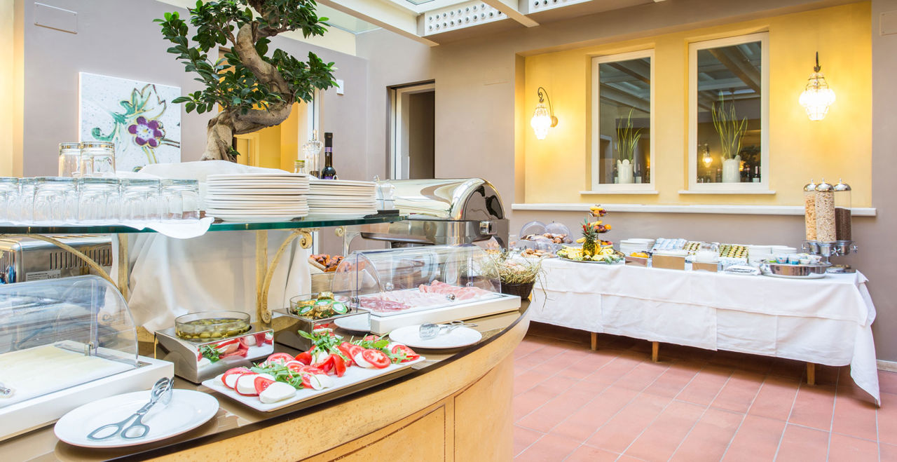Ein abwechslungsreiches und reichhaltiges Frühstück erwartet die Gäste des Palazzo für einen ganz besonderen Start in den Tag. Das Frühstück wird morgens in den beiden Sälen mit einem hübschen Wintergarten serviert, in den das Sonnenlicht durch das Glasdach fällt. Ein suggestiver Ort im alten Hof des Hauses. Eine große Auswahl an herzhaften und süßen Speisen mit hausgemachten Kuchen und Gebäck, Wurst und Käse, Eiern mit Speck, verschiedenen Brotsorten, Focaccia, Marmeladen, Frühstückszerealien, Joghurt, frischem Obst sowie von unserem Personal zubereiteten heißen Getränken.