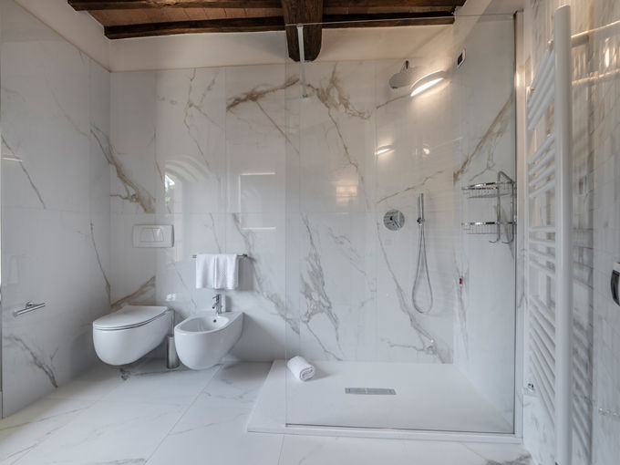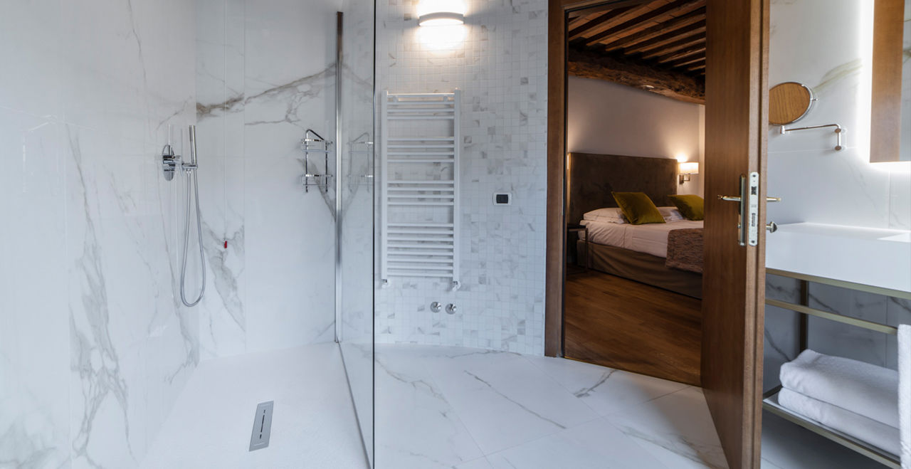 In ogni camera è presente un’ampia specchiera, una scrivania, uno spazioso armadio, una smart-TV satellitare 40”, una cassaforte, l’aria condizionata e un telefono diretto. Nei bagni oltre alla doccia è presente un grande specchio luminoso, un set di cortesia, un asciugacapelli e una presa americana. La connessione WiFi è disponibile in tutte le camere, oltre che nelle zone comuni del Relais.